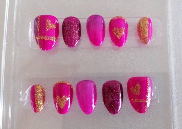Modèle Press On Nail faits main 🌟 Golden Girly –