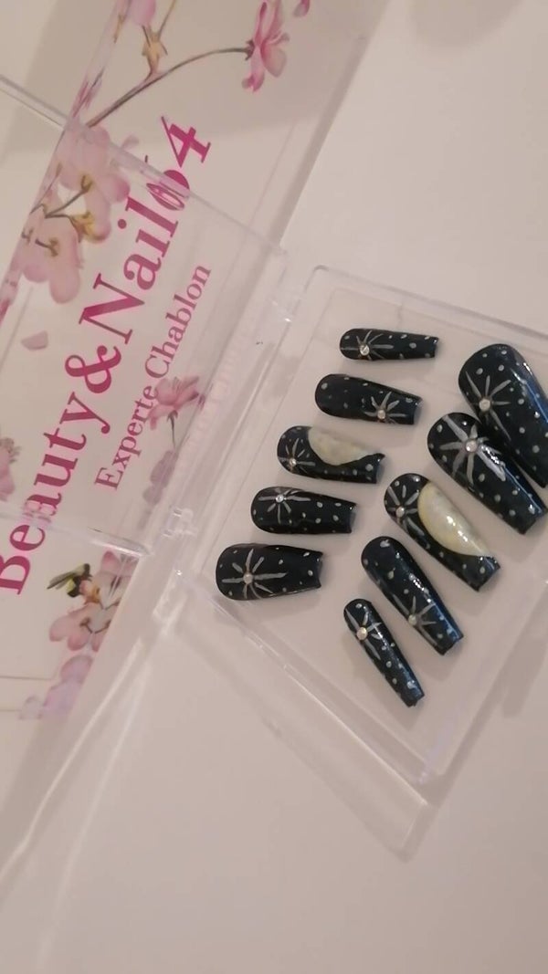 Tous les Press-On Nails présents sur la boutique sont des modèles. Quand je crée ces modèles, cela me permet d’identifier ce que je peux améliorer au niveau des défauts ou de la technique. Il va de soi que le prochain modèle destiné aux clientes sera encore mieux réalisé.
