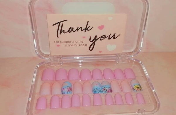 ✨ Press On Nail Universels – Collection Nail Art Unique : Rose Pastel & Nuances Ciel 🌸☁️